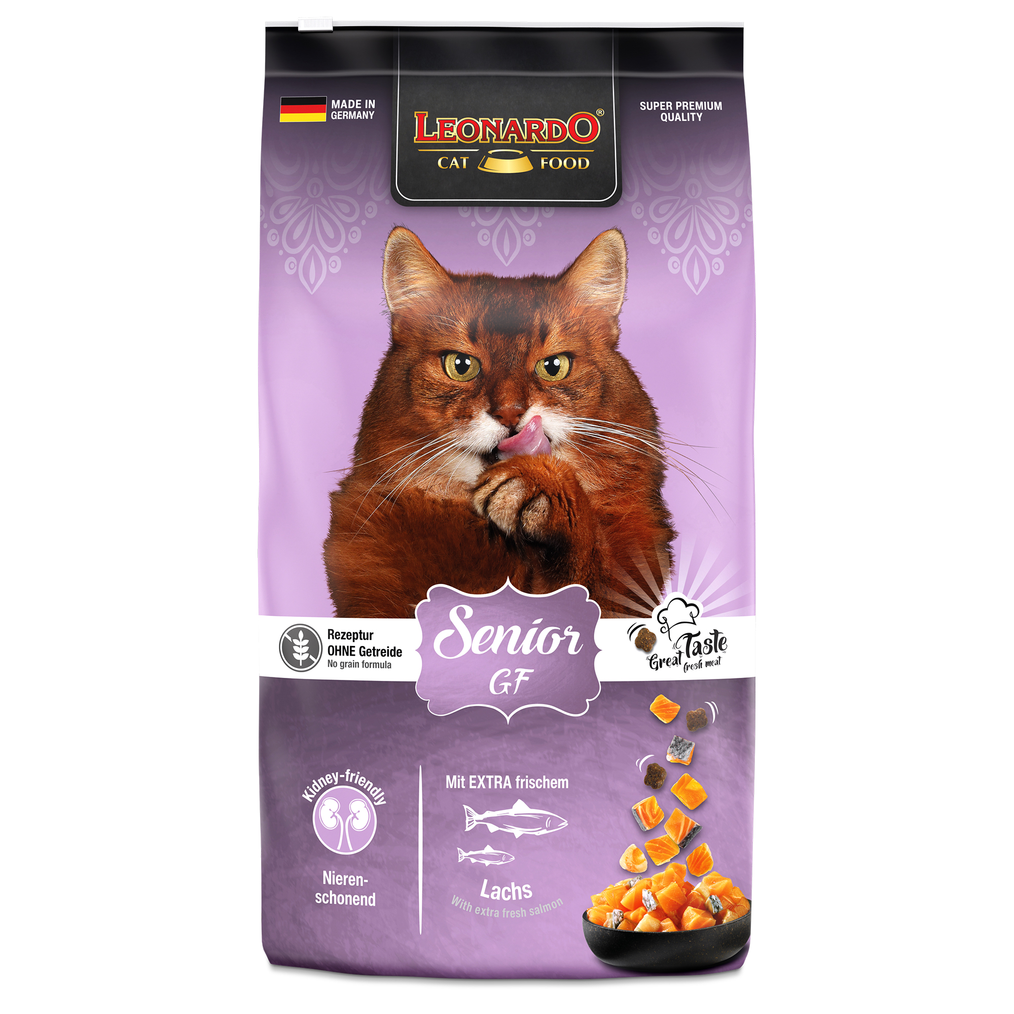 De ideale oplossing voor oudere, gevoelige katten - met extra verse zalm en waardevolle ingrediënten zoals amarant als graanvervanger. Het verlaagde energiegehalte helpt de kat om een optimaal gewicht te behouden zonder concessies te doen aan de uitstekende smaak. De zorgvuldig geselecteerde samenstelling met minder fosfor, natrium en eiwit is bovendien zacht voor de nieren.
